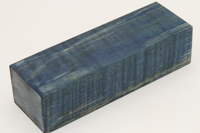 Bloc pour la coutellerie, Erable sycomore ondé stabilisé bleu, ref:BESOs73316b