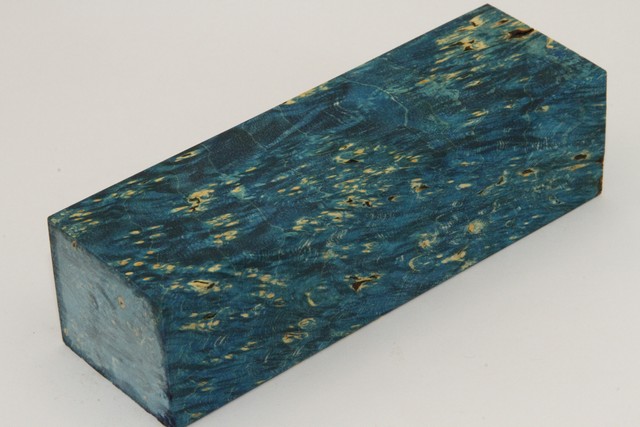 Bloc pour la coutellerie, Loupe d'Erable Négundo stabilisé bleu, ref:BLpErs73009b