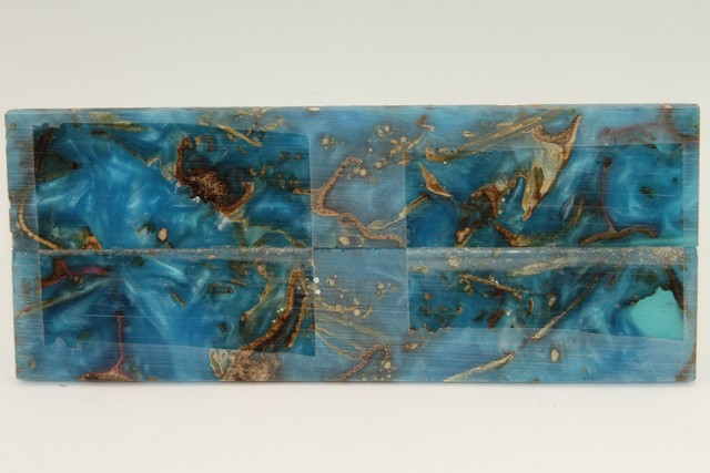 Plaquettes pour la coutellerie, Méli-Mélo + résine bleue nacrée, ref:PRMM72092
