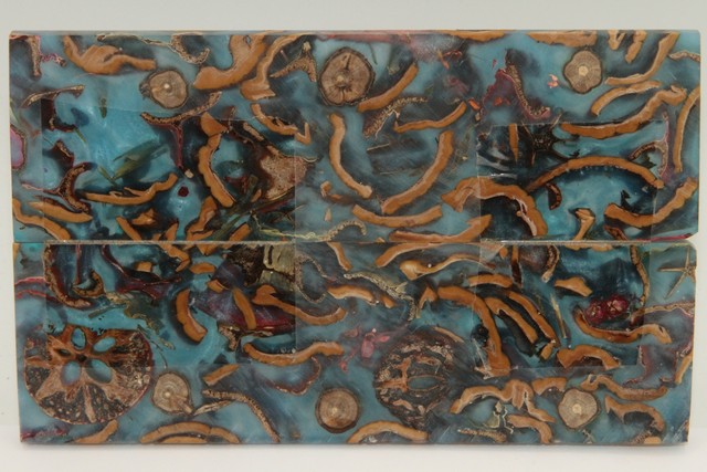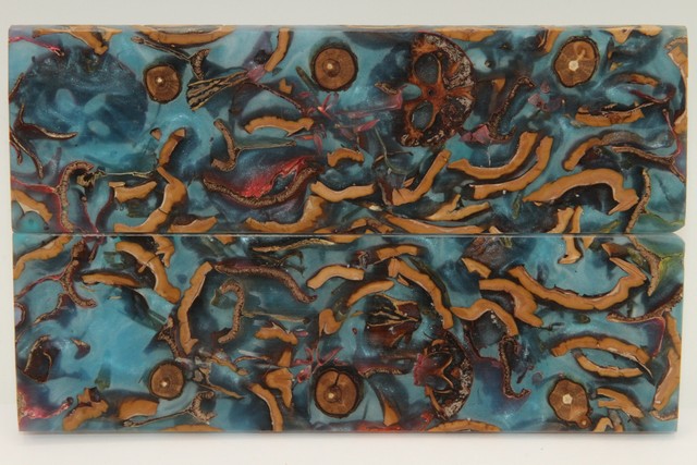 Plaquettes pour la coutellerie, Méli-Mélo + résine bleue nacrée, ref:PRMM72096