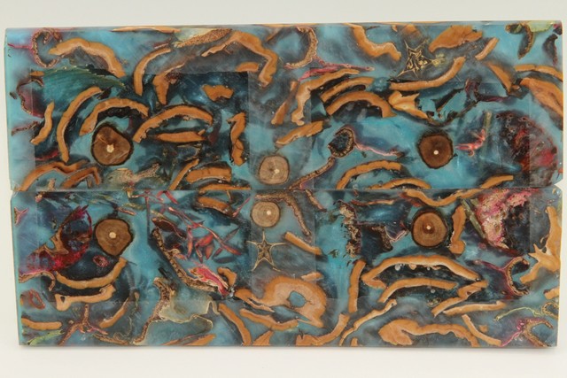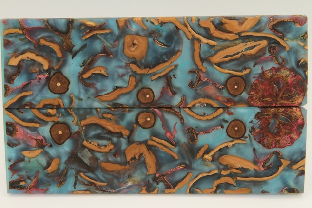 Plaquettes pour la coutellerie, Méli-Mélo + résine bleue nacrée, ref:PRMM72099