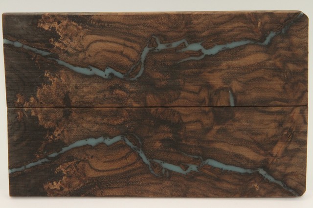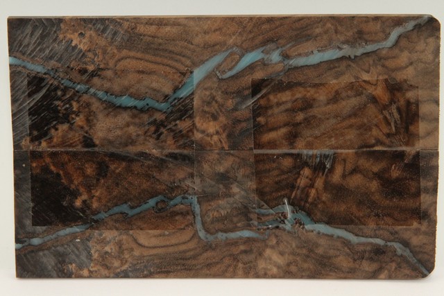 Plaquettes pour la coutellerie, loupe de Noyer + résine bleue, ref:PRLpN72207